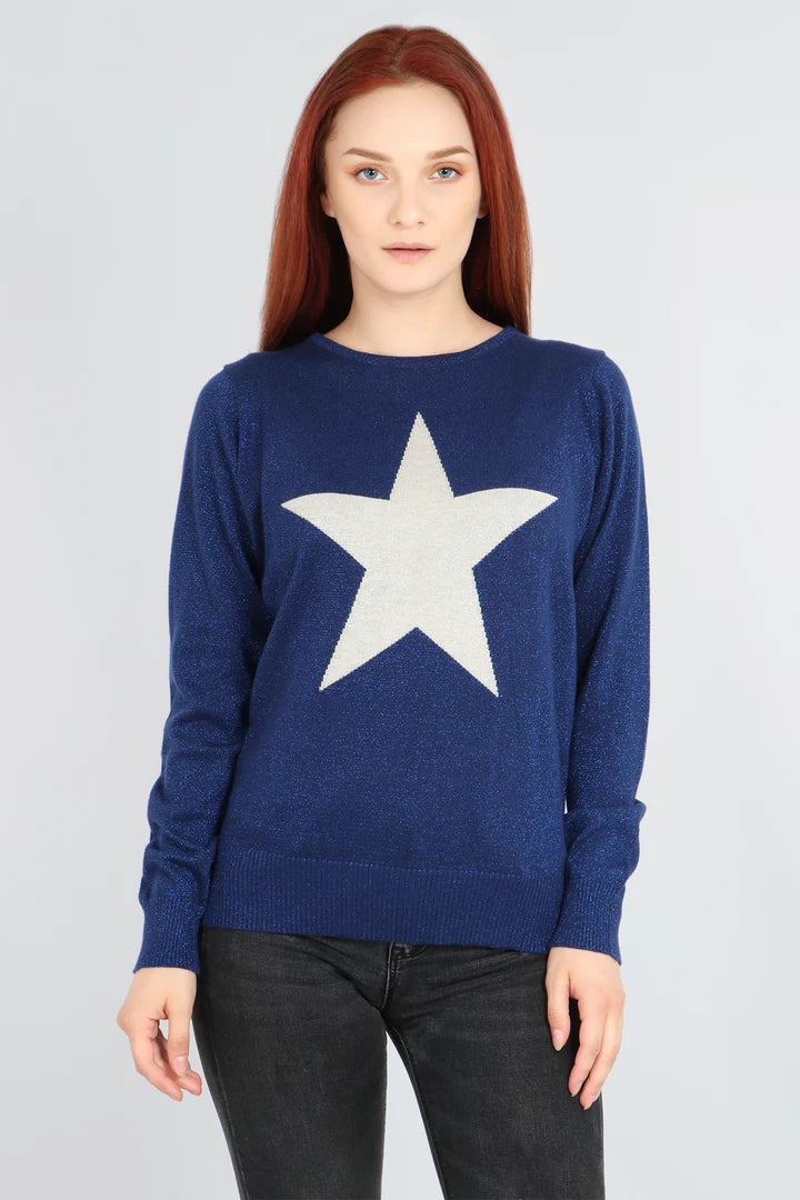 Miss Shorthair Silver Star Detail Lurex Knitted Jumper